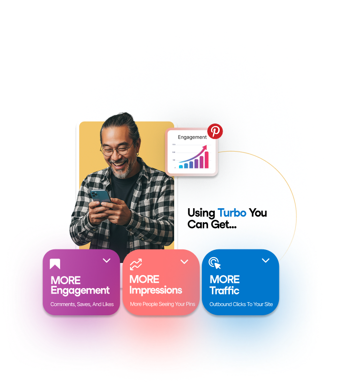 The likes, comments, and saves you get from Turbo users kickstart your Pins and provide Pinterest with the signals to show your content to more people, giving you more engagement, more impressions, and ultimately more traffic.